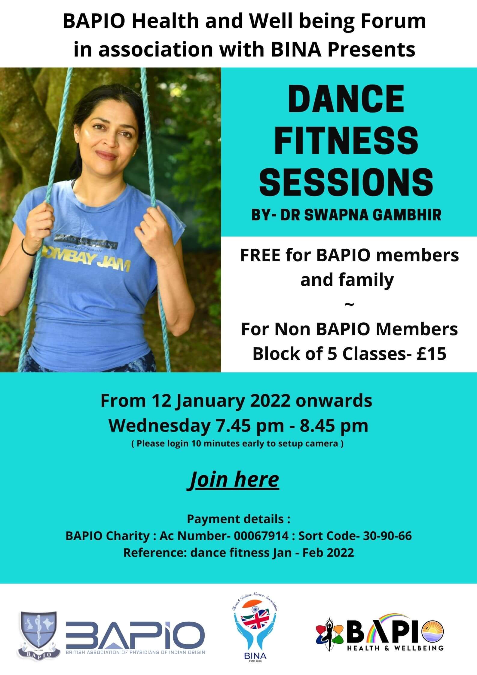 The Dance Fitness classes organised by the BAPIO Health and Well-being forum and BINA are a great hit. The classes are run by Dr Swapna Gambhir, well known for her Bombay Jam classes.